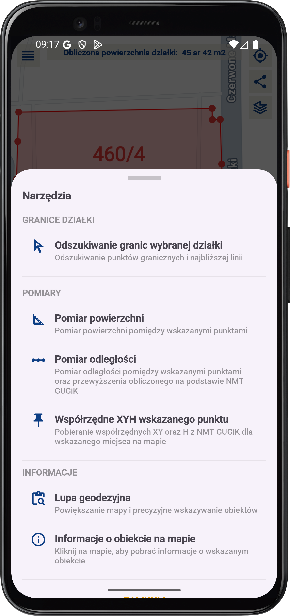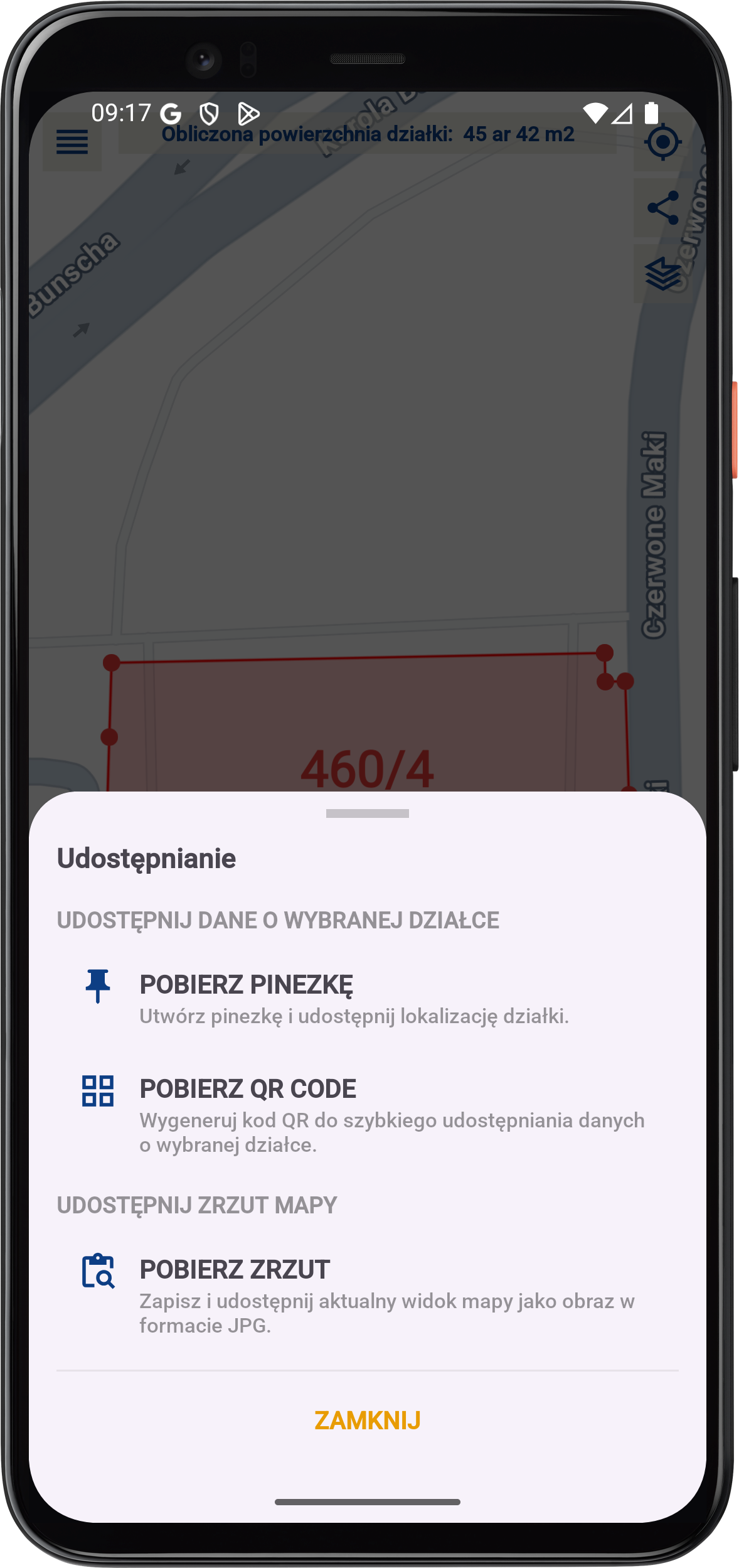 Za pomocą aplikacji pobierzesz informację o kształcie działek sąsiednich.
